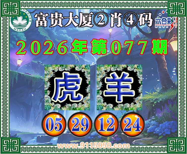 077期:【富贵大厦】 👛②肖④码👛【羊】【05.29.12.24】开:虎29