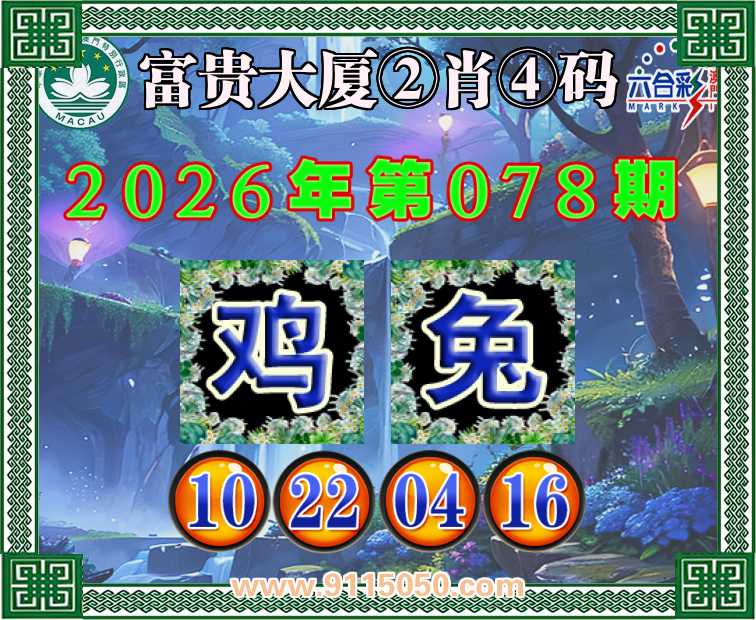 078期:【富贵大厦】 👛②肖④码👛【兔】【10.22.04.16】开:鸡46