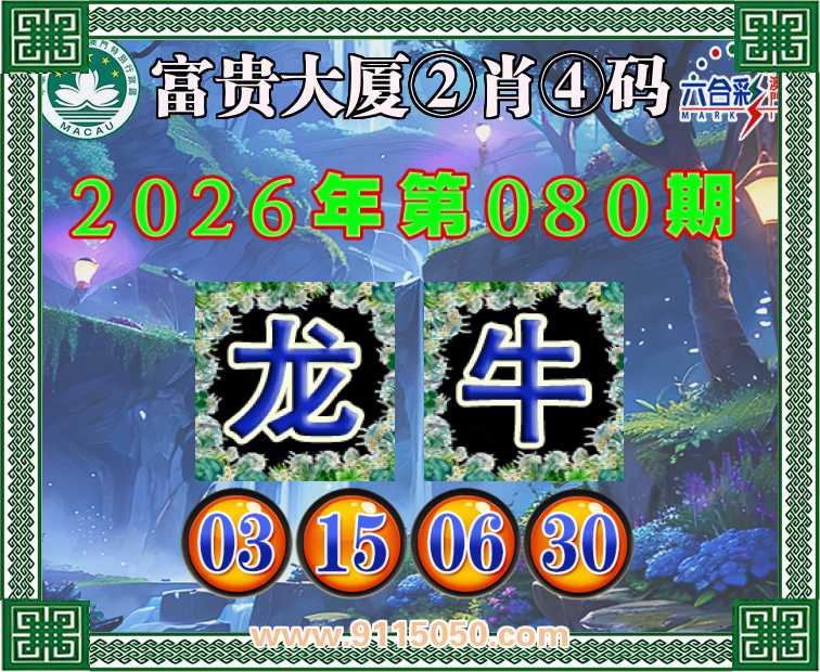 080期:【富贵大厦】 👛②肖④码👛【牛】【03.15.06.30】开:龙03
