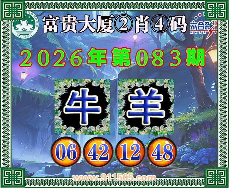 083期:【富贵大厦】 👛②肖④码👛【牛羊】【06.42.12.48】开:虎05