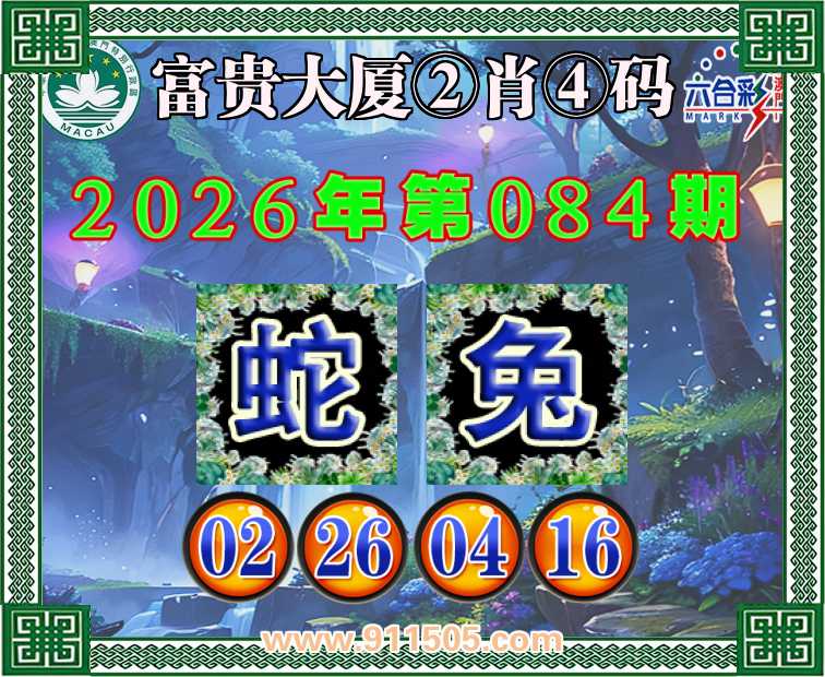 084期:【富贵大厦】 👛②肖④码👛【蛇】【02.26.04.16】开:兔16
