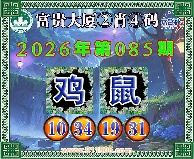 085期:【富贵大厦】 👛②肖④码👛【鸡】【10.34.19.31】开:鼠19