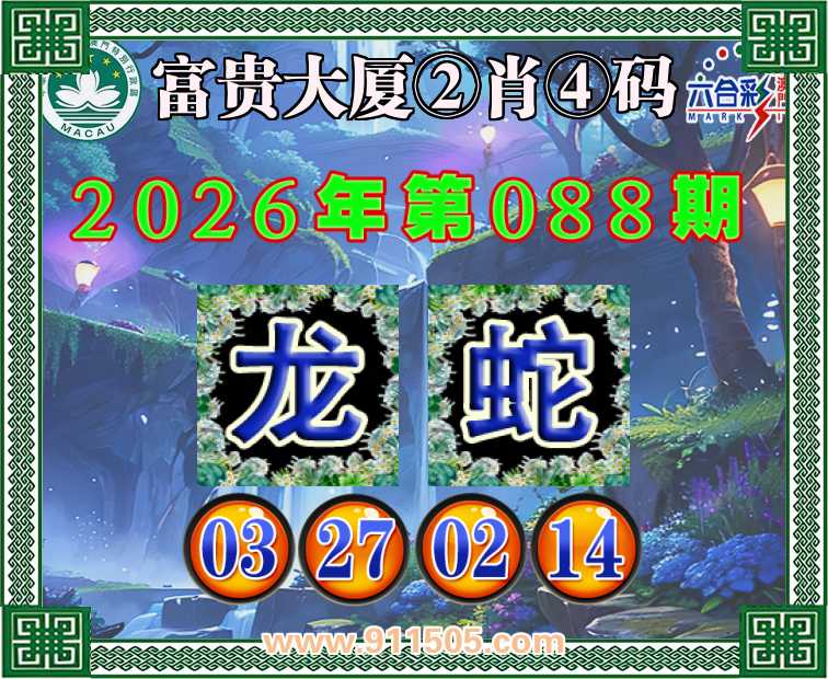088期:【富贵大厦】 👛②肖④码👛【蛇】【03.27.02.14】开:龙27