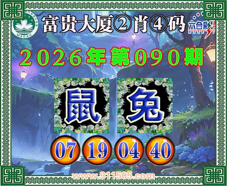 090期:【富贵大厦】 👛②肖④码👛【鼠兔】【07.19.04.40】开:羊36