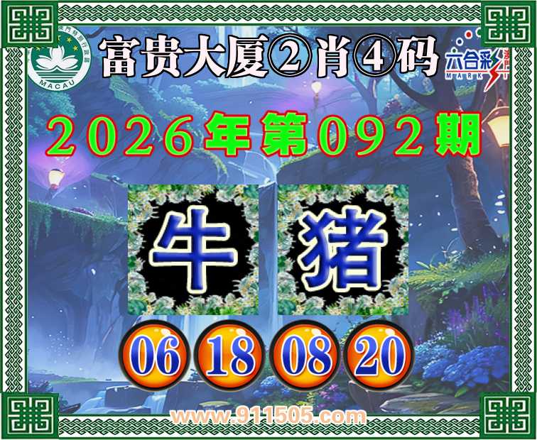 092期:【富贵大厦】 👛②肖④码👛【猪】【06.18.08.20】开:牛06