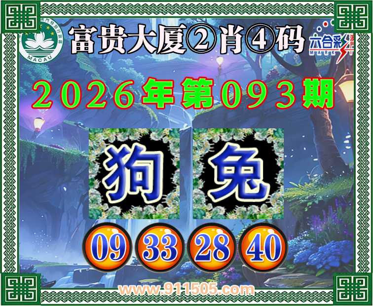 093期:【富贵大厦】 👛②肖④码👛【狗】【09.33.28.40】开:兔40