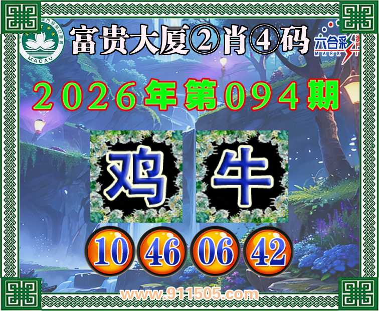 094期:【富贵大厦】 👛②肖④码👛【鸡牛】【10.46.06.42】开:虎17