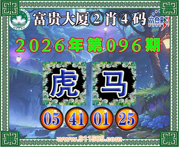 096期:【富贵大厦】 👛②肖④码👛【虎马】【05.41.01.25】开:鼠43