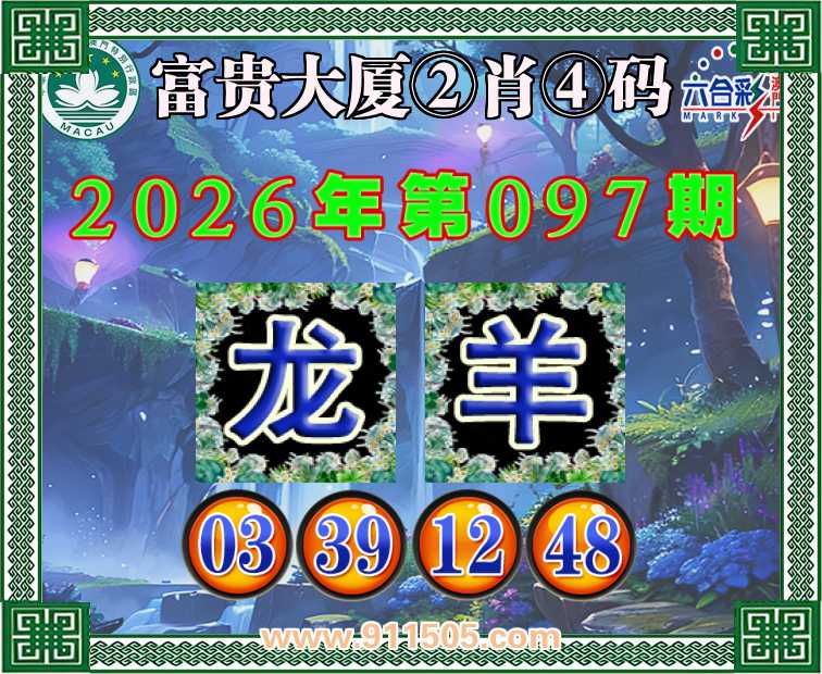 097期:【富贵大厦】 👛②肖④码👛【龙羊】【03.39.12.48】开:猴11