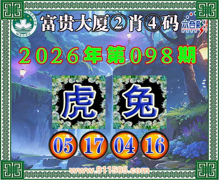 098期:【富贵大厦】 👛②肖④码👛【兔】【05.17.04.16】开:虎17