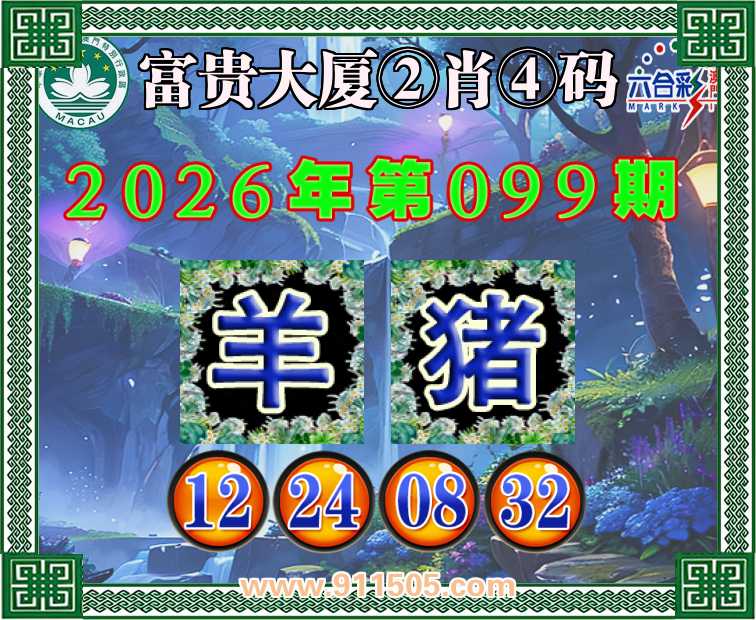 099期:【富贵大厦】 👛②肖④码👛【猪】【12.24.08.32】开:羊12