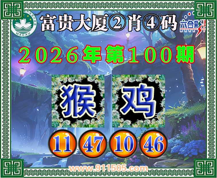 100期:【富贵大厦】 👛②肖④码👛【猴鸡】【11.47.10.46】开:狗33