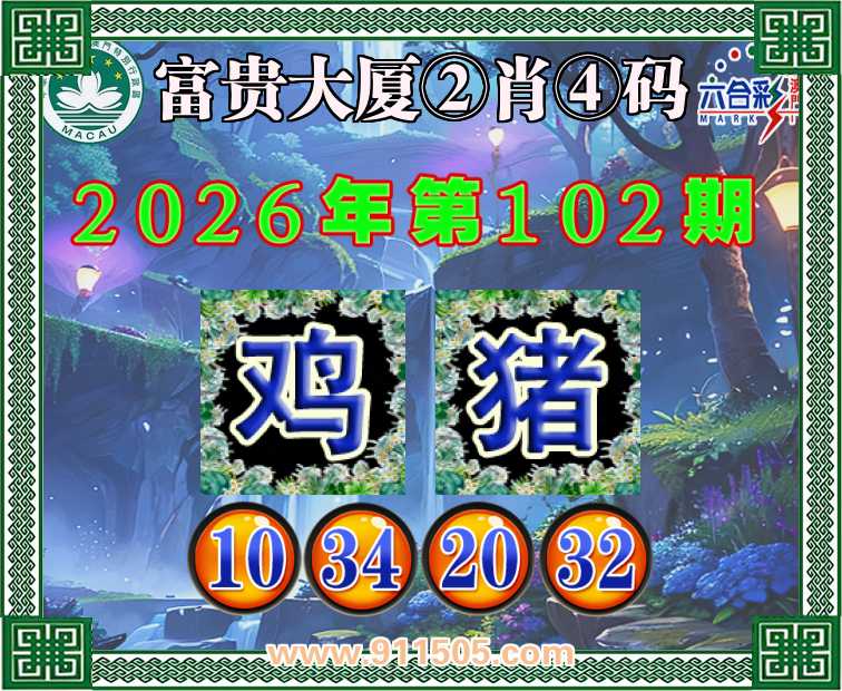 102期:【富贵大厦】 👛②肖④码👛【鸡】【10.34.20.32】开:猪20