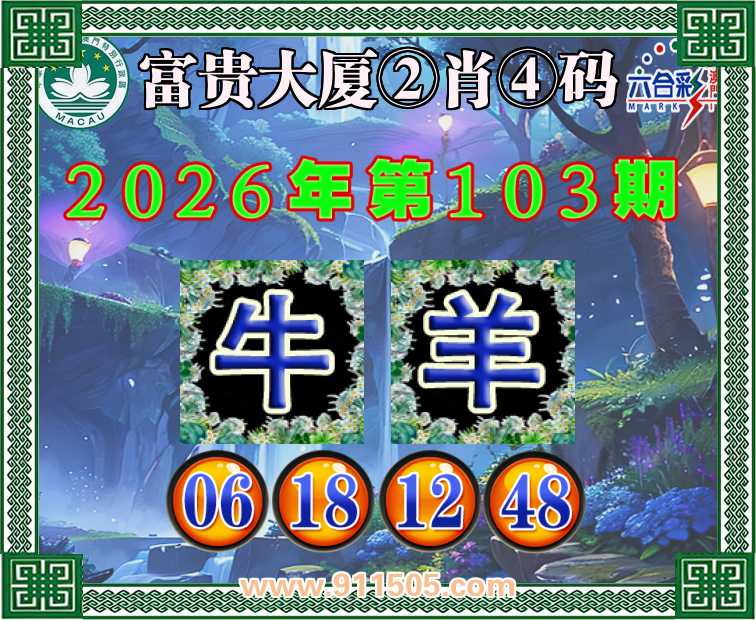 103期:【富贵大厦】 👛②肖④码👛【羊】【06.18.12.48】开:牛06
