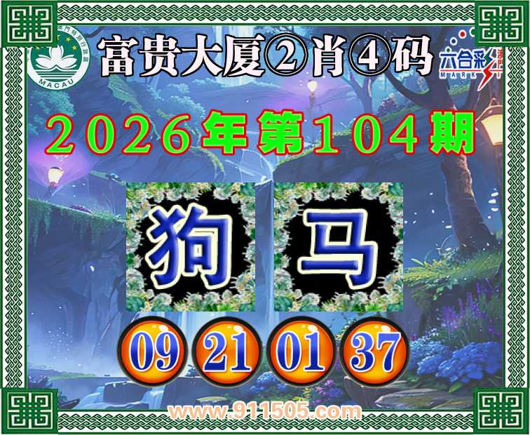 104期:【富贵大厦】 👛②肖④码👛【狗】【09.21.01.37】开:马01