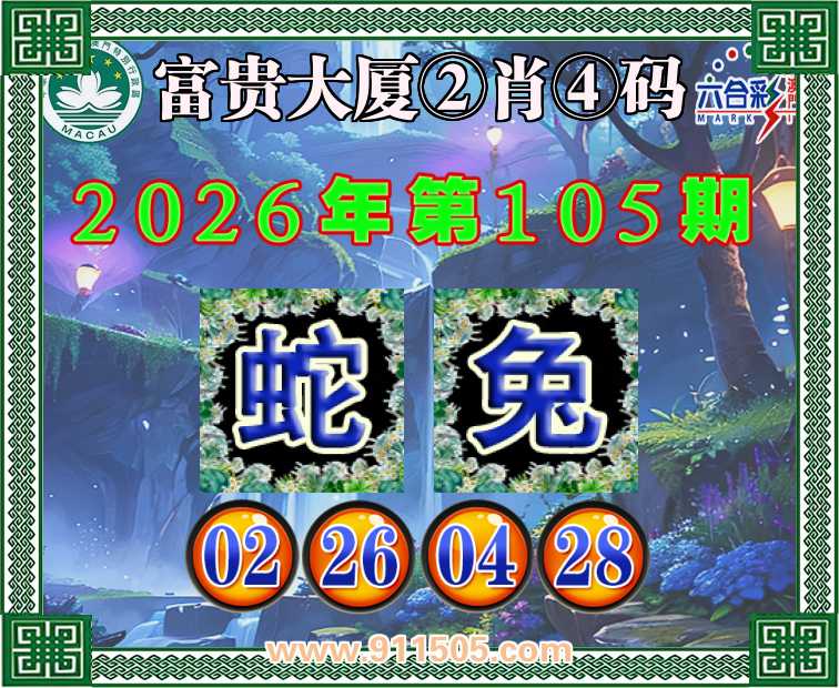 105期:【富贵大厦】 👛②肖④码👛【蛇】【02.26.04.28】开:兔28